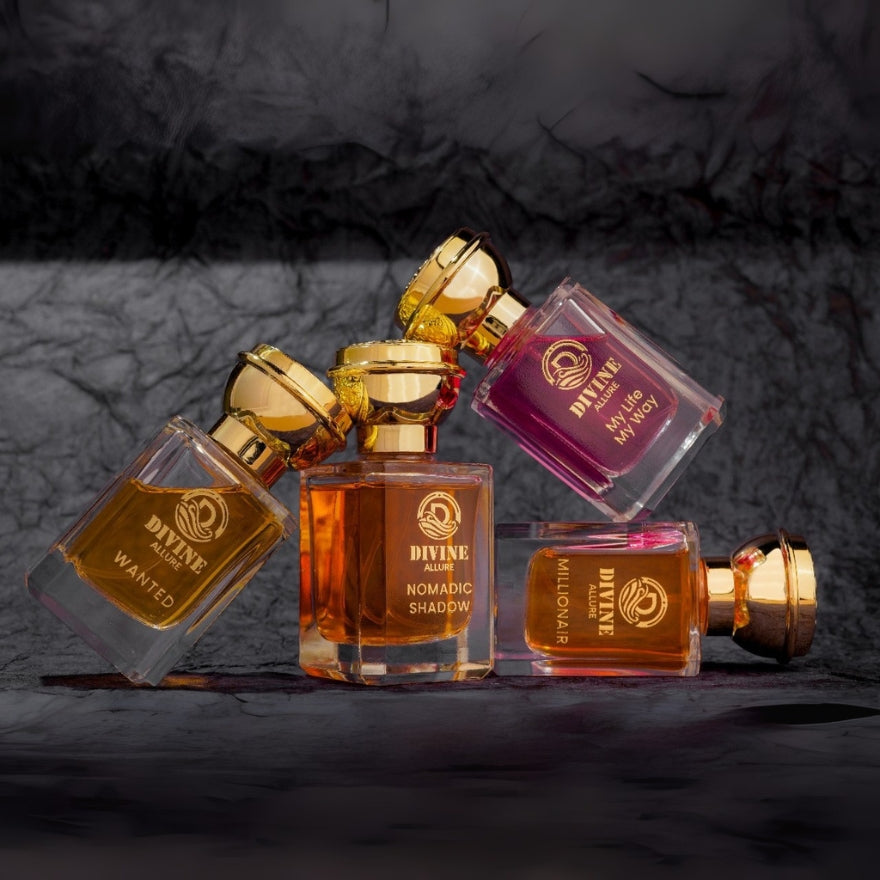At Divine, craftsmanship is the soul of everything we create. Each fragrance begins with a vision—an emotion, a memory, a moment—then unfolds through a meticulous process of sourcing, blending, and refining.